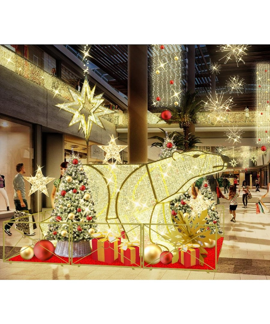 Our giant 6.2' and 12.8' 3D Polar Bears are a magical addition to any winter wonderland display. The 3D Polar Bear is constructed on a gold frame with shimmering warm white LED mini lights and a clear silicone netting.